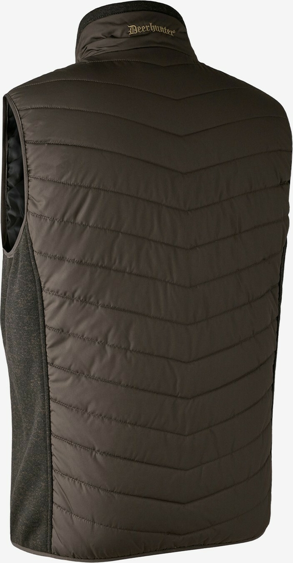Moor vatteret vest fra danske Deerhunter. Vesten er fremstillet i strækbart materiale ved skuldre og sider, hvilket giver ekstra høj komfort og god pasform. Vesten har Deer-Tex® Temp isolering, hvilket gør den varm og blød, perfekt til brug om foråret og sommeren. På forsiden af vesten findes tre brugbare lommer med lynlås.